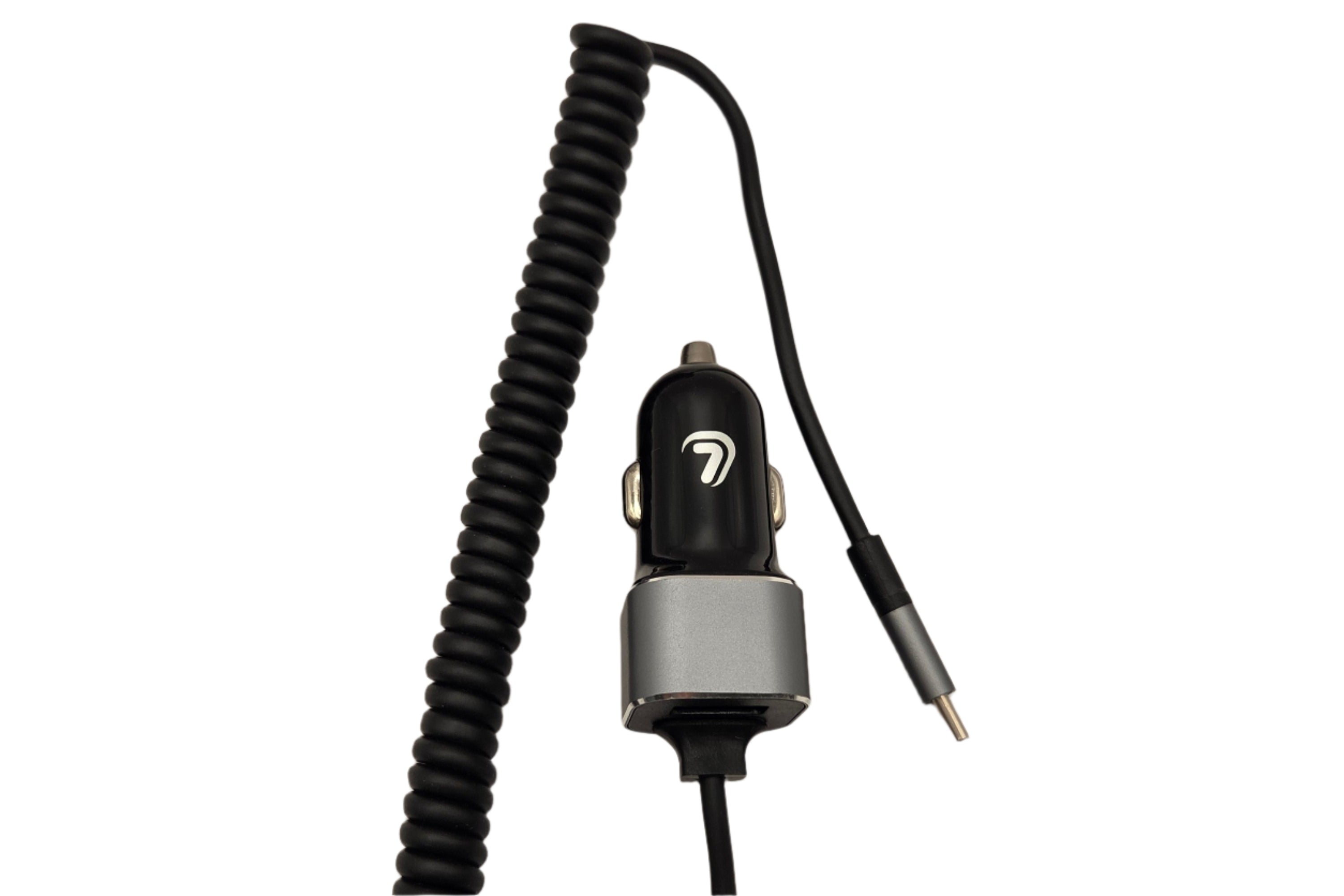 Încărcător auto USB-C, 1 port, 3000mA, cablu spirală 150cm