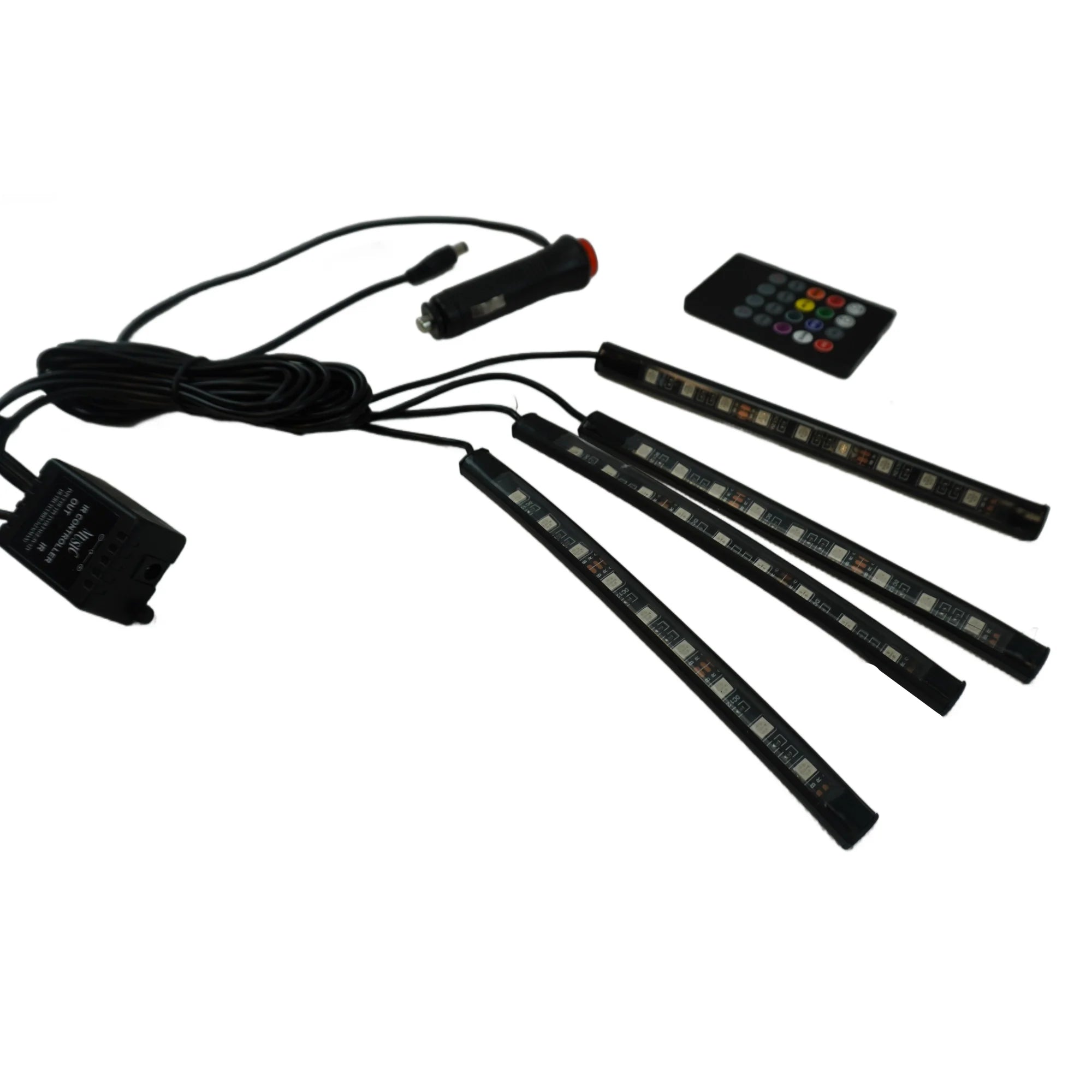 Transformă atmosfera din interiorul mașinii sau camionului tău cu această bandă LED cu telecomandă, alimentată la 12V prin priza pentru brichetă. Concepută pentru a adăuga un strop de stil și personalitate, banda dispune de 4 segmente, fiecare cu 9 LED-uri, ce pot fi instalate cu ușurință sub scaune, în zona picioarelor, portbagaj sau chiar în cabina camionului.