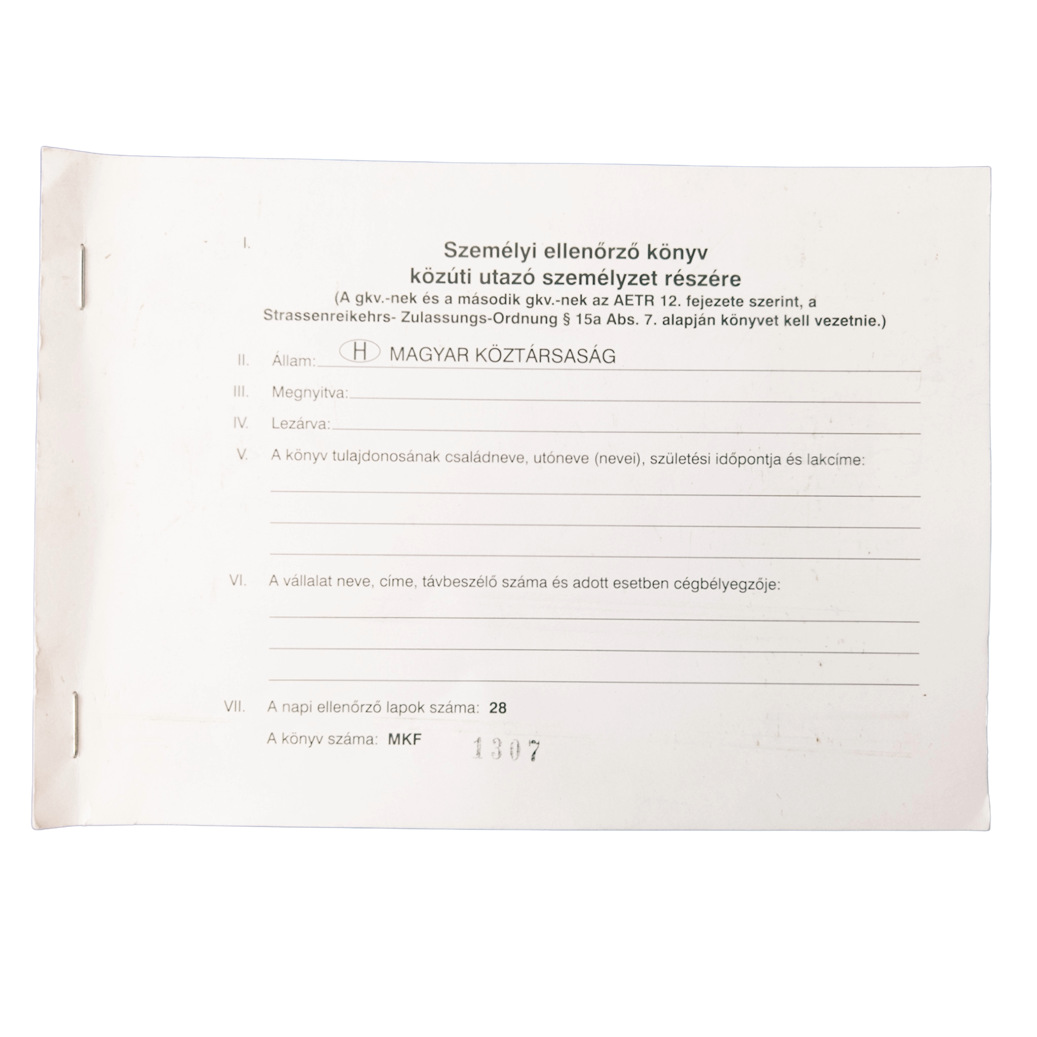Designed for 28 days of entries, this logbook is easy to complete and supports precise documentation for driving times, work shifts, and breaks—making audits simple and helping you stay compliant. The booklet includes spaces for the driver’s personal data and company contact information, ensuring quick identification if needed.