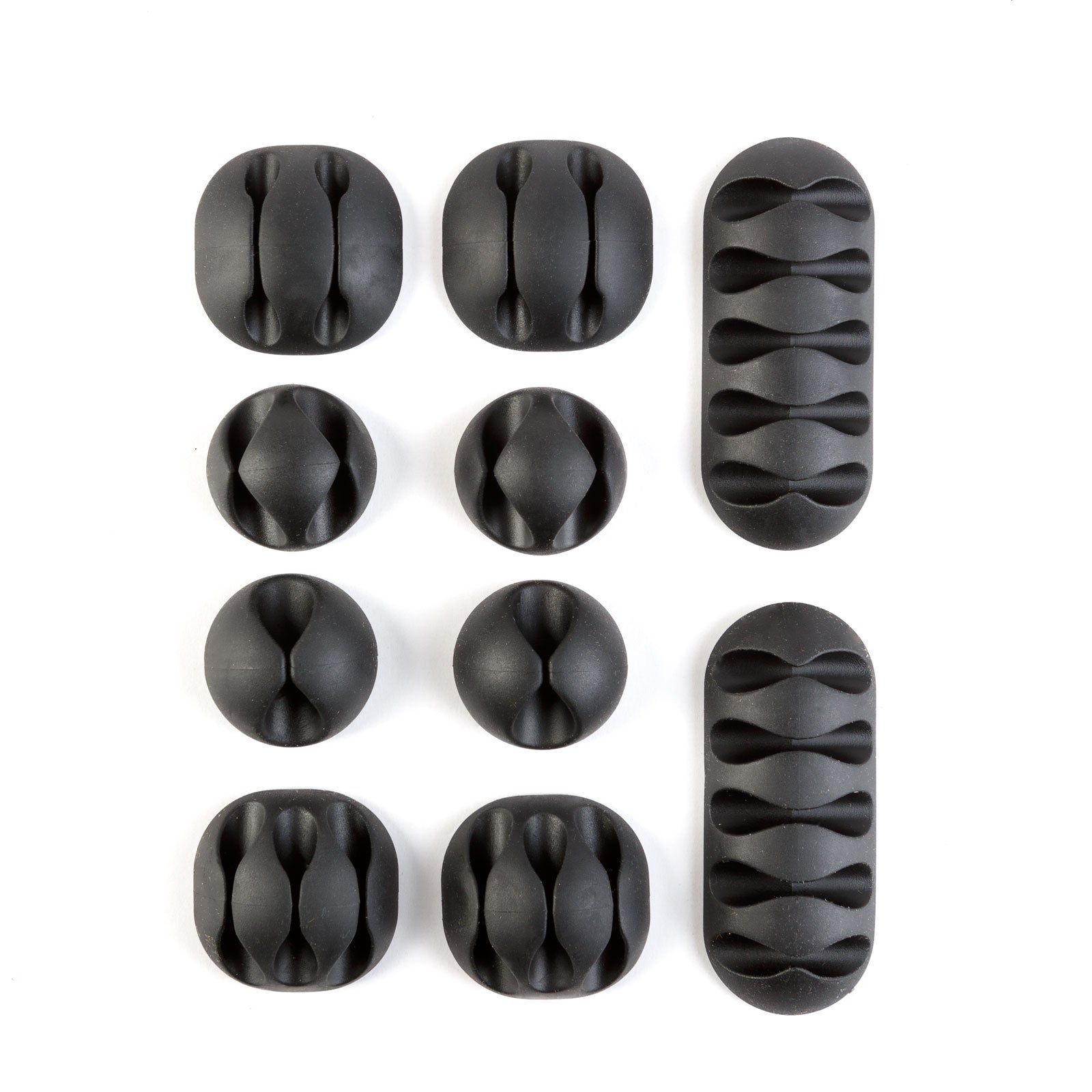 A szett többféle méretű egységet tartalmaz, amelyekkel akár 26 kábelt is rendszerezhetsz. A kábelek egyszerűen belepattinthatók a gumiból készült vájatokba, így mindent ott tarthatsz, ahol szükséged van rá. Az öntapadós hátoldal gyors és csavarmentes telepítést tesz lehetővé, bármilyen bútorra vagy felületre rögzíthető.